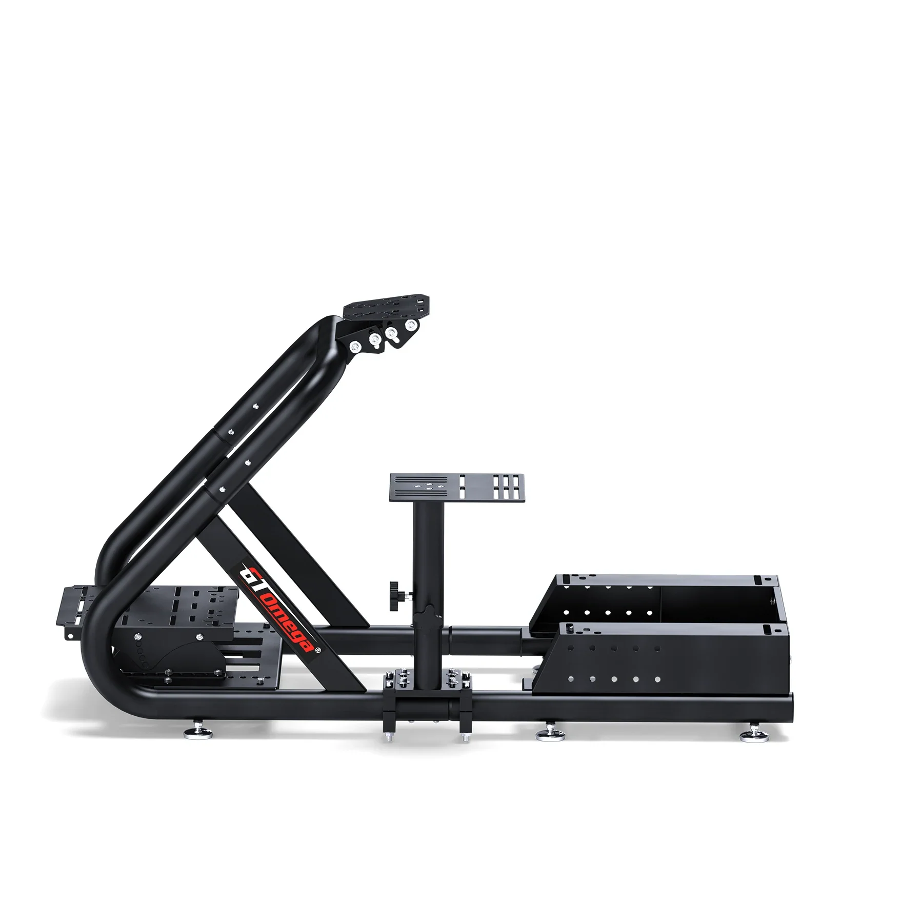 Featuring a 2” diameter steel tube framework with a sleek black powder coated finish, The TITAN Cockpit offers unmatched stability out of the box with even the most powerful wheel and pedal sets. Alongside this focus on durability the TITAN cockpit reaches new heights of adjustability and minimal flex.